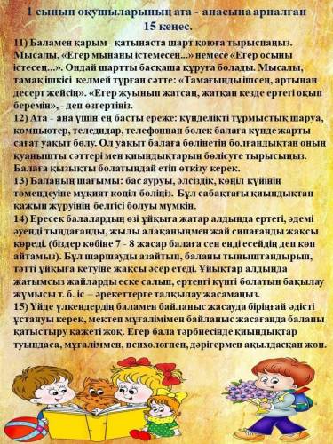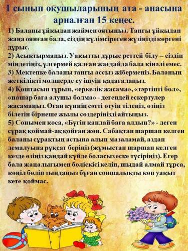 Бірінші сынып оқушыларының ата-аналарына арналған 15 кеңес