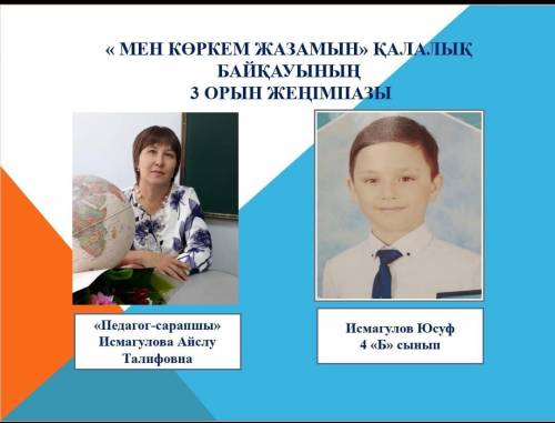 2023 жылғы 23 қарашада 2-4- сынып оқушылары арасында " Мен көркем жазамын" қалалық байқау өтті. Байқау қорытындысы бойынша 4 "Б" сынып оқушысы Исмагулов Юсуф жүлделі 3 орынды иеленді. Жетекшісі Исмагулова А.Т