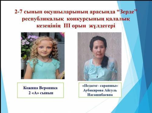 2"А" сынып оқушысы Кожина Вероника-3 орын, (жетекшісі Аубакирова А.Н.) Құттықтаймыз!