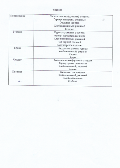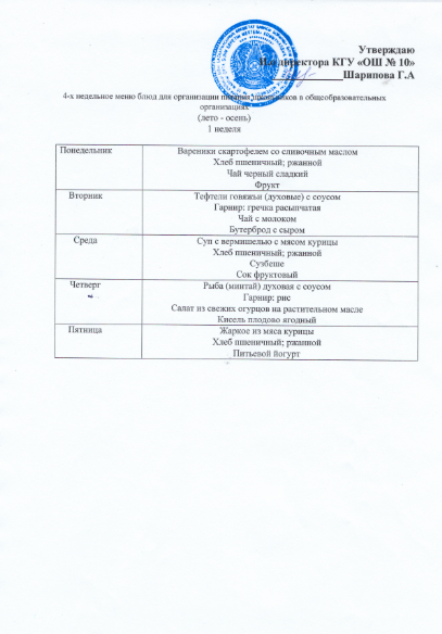 Жалпы білім беру ұйымдарында оқушылардың тамақтануын ұйымдастырудың 4 апталық ас мәзірі