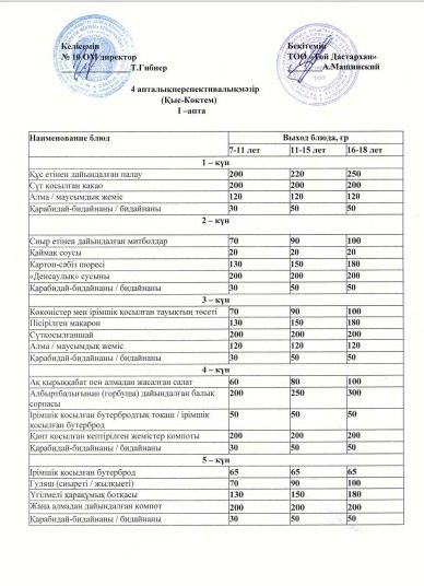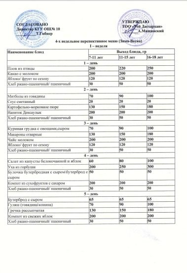 4 апталық перспективалық меню (Қыс- Көктем)