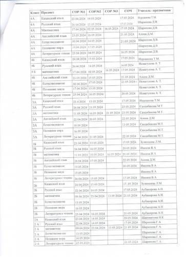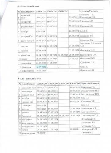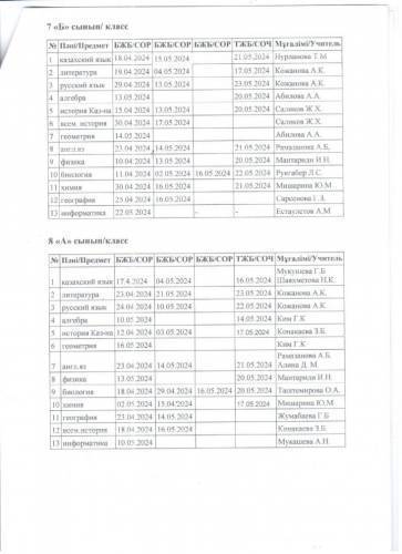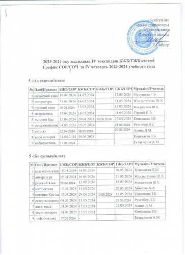 2023 - 2024 оқу жылынын 4 тоқсандық БЖБ/ТЖБ кестесі
