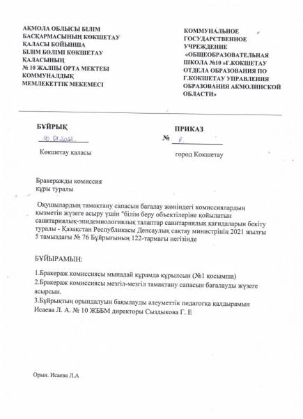 Бракеражды комиссиясының құрылуы туралы 2021-2022ж 2 жарты жылдық
