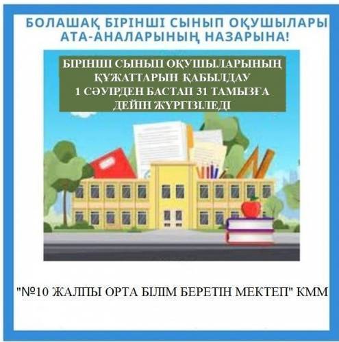 Білім беру ұйымдарында бірінші сыныпқа қабылдау бойынша өтініштер 1 сәуірден бастап 31 тамызға дейін қабылданады.