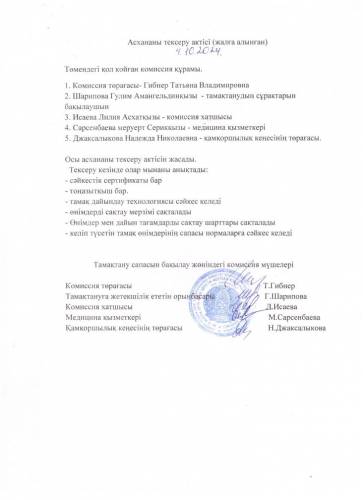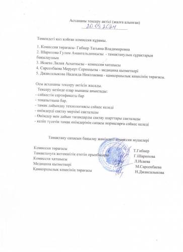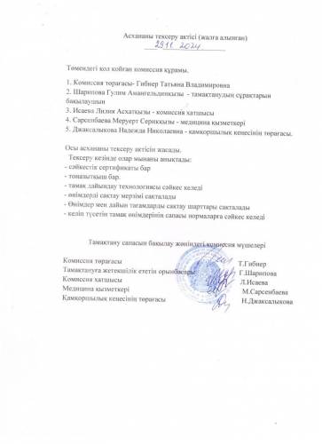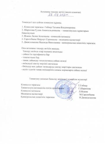 2024-2025 оқу жылына арналған асхананы тексеру актісі