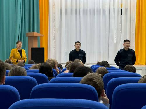 Ағымдағы жылдың 22 қарашасында «Біртұтас тәрбие» бағдарламасының «Заң және тәртіп» жобасы аясында оқушылардың құқықтық білімді нақты өмірде, нақты практикалық жағдайларды шешуде өз бетінше қолдана білу, қоғамдағы тәртіп пен қауіпсіздікті сақтау үшін құқықтық нормалар мен ережелерге сәйкес әрекет ете алу, жағдаяттарды заңдылық пен этика тұрғысынан бағалау және негізделген шешімдерді қабылдау мақсатында №10 ЖОББМ-нің инспекторы, полиция лейтенанты Нысанбай Е.Б. пен Шакимжанов М. мектептің 7-9 сынып оқушыларымен “Әкімшілік құқық бұзушылық” тақырыбында лекция жүргізіп, оқушылардың сұрақтарына жауап берді.