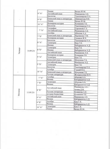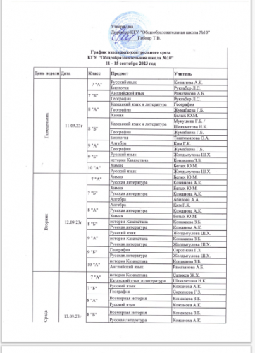 10 жалпы білім беретін орта мектеп " КММ бақылау сынамасының кестесі