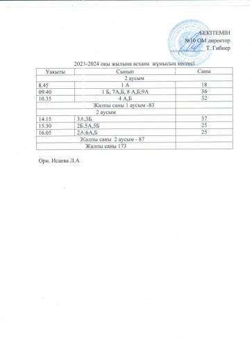 2023-2024 оқу жылына асхана жұмысың кестесі