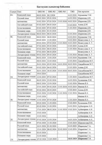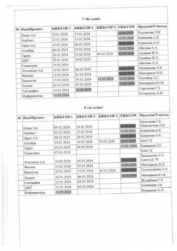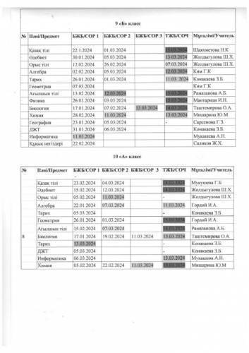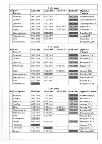 2023 - 2024 оқу жылынын 3 тоқсандық БЖБ/ТЖБ кестесі