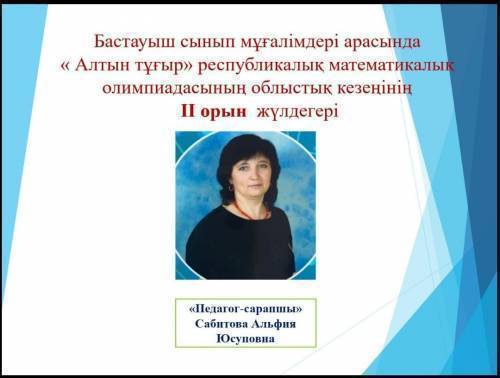 Бастауыш сынып мұғалімдері арасында « Алтын тұғыр» республикалық математикалық олимпиадасының облыстық кезеңінің II орын жүлдегері
