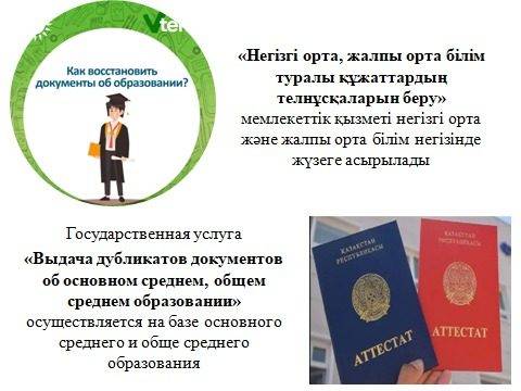 «Негізгі орта, жалпы орта білім туралы құжаттардың телнұсқаларын беру» мемлекеттік қызметі негізгі орта және жалпы орта білім негізінде жүзеге асырылады.