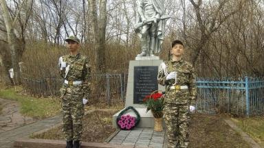Коллектив СШ № 10 провели субботник возле памятников Героя Советского Союза Ф.Глинина и павшим воинам в