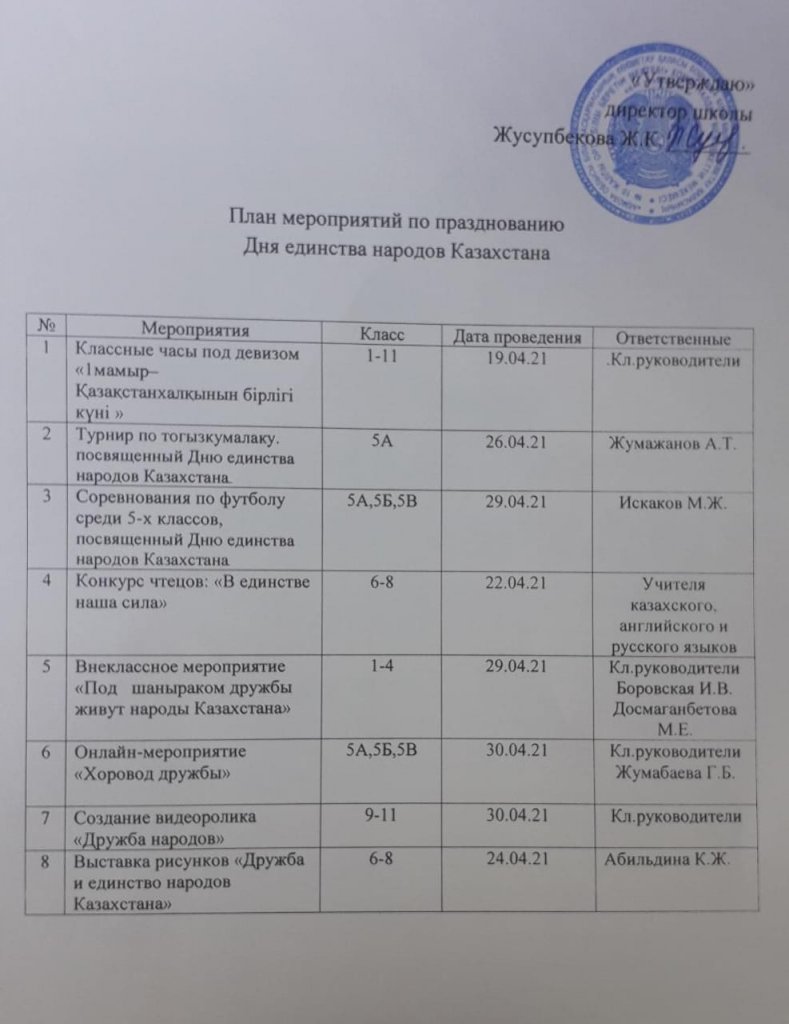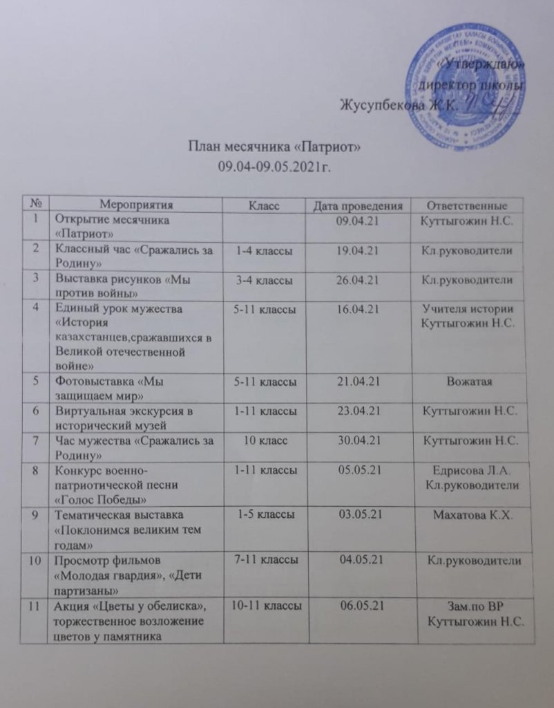 Ұлы жеңіс күнінің 76 жылдығына арналған іс-шара жоспары