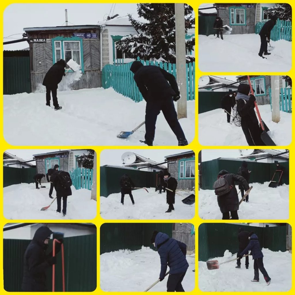 Мектеп еріктілер қамкөңіл қарияларды назарсыз қалдырмау үшін,16 ақпан күні тәлімгер Сәду А. Ж мен Каусар 40 мекен жайында тұратын жалғыз басты әжеге қар күреп, көмек көрсетті.