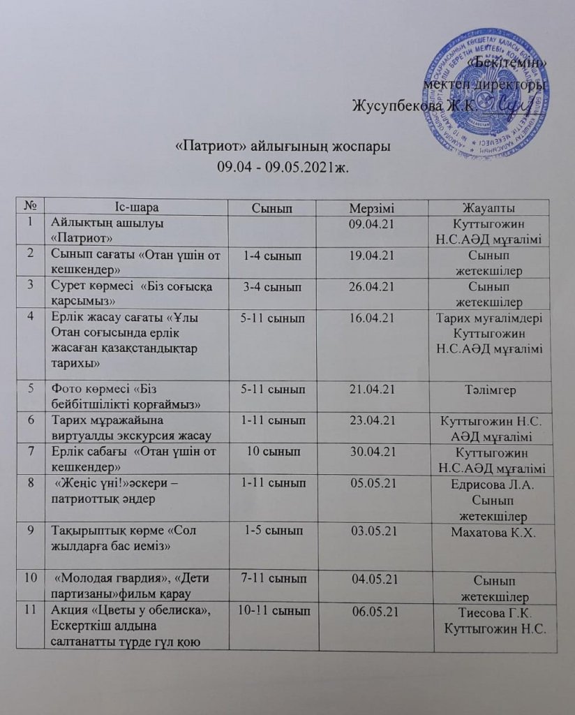 "Патриот" айлығының жоспары
