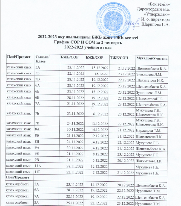 2022-2023 оқу жылындағы БЖБ және ТЖБ кестесі