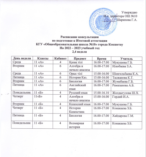 Қорытынды аттестаттауға дайындық бойынша кеңес беру кестесі