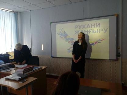 9.02.2018г. учитель русского языка и литературы Прибора Г.М. провела среди учащихся 8-11 классов конкурс чтецов «Казахстан – мой дом» в рамках реализации программы Рухани Жангыру.