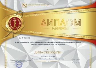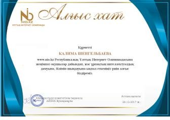 «NIO.KZ» Республикалық интернет олимпиадаға 5«А» сыныбының бес оқушысы (Абай Аят, Альжанов АСанали, Балташев Тұрар, Муктаева Улжан, Серікқызы Дина) қазақ тілінен қатысып, барлығы жүлделі бірінші орынды иеленіп, І дәрежелі дипломдармен марапатталды. Олимпиадаға дайындаған жетекші мұғалімі Шенгельбаева К.А. алғыс хатпен марапатталды.