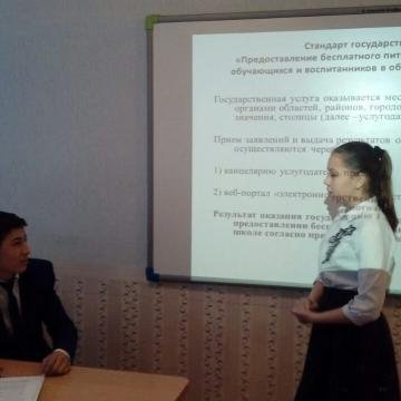 25.12.2017ж. № 10 ОМ тәрбие жұмысы жөніндегі директор орынбасары Конакаева З.Б. Қазақстан Республикасында мемлекеттік қызмет көрсету туралы айтып өтті,слайдттар көрсетілді.
