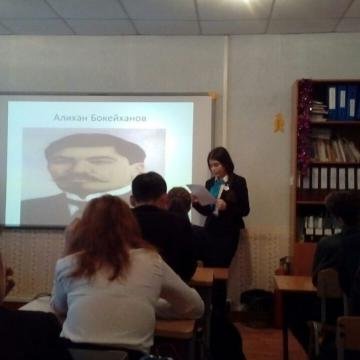 Выступили с докладами о великих представителей алашского движения зам.директора по ВР Конакаева З.Б., учащиеся 10 класса Чмут Олеся, Нагоева Луиза.