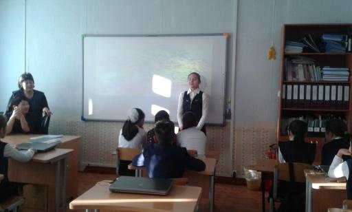 Мукушева Г.Б. 8»б» сыныбында «Қызықты қазақ тілі әлемі» деген тақырыпта зияткерлік сайыс өткізді. Сынып 3 топқа бөлінді. 1-топ « Сұнқар» тобы , 2 - топ «Тұлпар» тобы, 3- топ «Жүйріктер». Сайыс бірнеше кезеңнен тұрды. Тіл өнері , Бәйге , Алтын жұмбақ, Полиглот, Тапқыр достар. Әр кезең бойынша өз білімдерін көрсете алды. Барлық берілген тапсырмаларға қызығушылығын танытты.