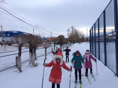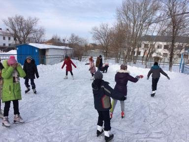 На уроках физкультуры и во внеурочное время учащиеся школы с удовольствием катаются на коньках на школьном корте, который организовали учителя физкультуры Искаков М.Ж. и Теміргали Н.А. А также очень нравится детям катклься на лыжах на организованной лыжной трассе.
